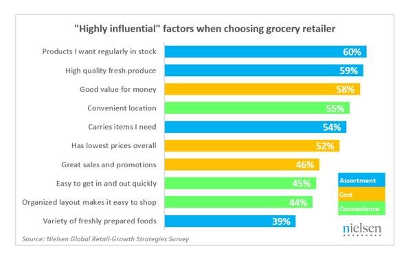 Four of the 10 most influential factors are related to product range and quality, while three related to each of price and convenience.
